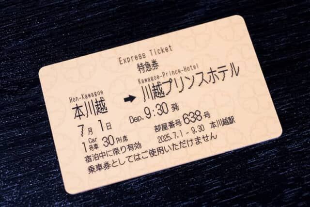 今回のプランには特急券をイメージしたルームキーが1部屋に1枚ついていて、お土産にいただけます。日にちと発車時刻はプランの販売期間になっていて、写真のカードは9月30日まで。10月1日以降は現在デザインの一部変更を検討中です。