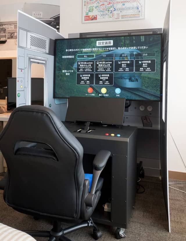 シミュレータで運転ができるのは001系Laviewと40000系の急行と各駅停車。西武鉄道池袋線・西武秩父線の池袋-西武秩父間の運転体験ができるうえ、モニターには実際の走行映像が映し出されます。車両音声も流れ、運転操作も限りなく本物の車両に近づけて再現。リアルな運転を体験できます。