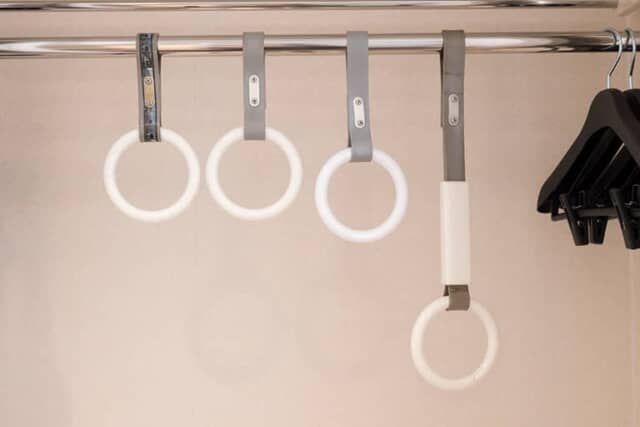 ▲実際に使われていたつり革がクローゼットに吊るされています