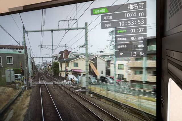 モニターには西武線沿線の実際の走行映像が使われていて、駅員さんが映っていたり、時には他の車両とすれ違ったり、スピードを上げると画面左右の風景が流れはじめと臨場感たっぷりです。