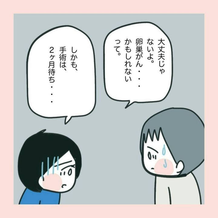 最初は尿管結石の疑い…ということで診察が進められましたが、詳しく調べてみると卵巣に影があることが分かります。さらに詳しく検査を進めていくと、どうやら卵巣の影は「がん」ではないかという結論が出そうでした。大きな不安感をいだく苗でしたが…。