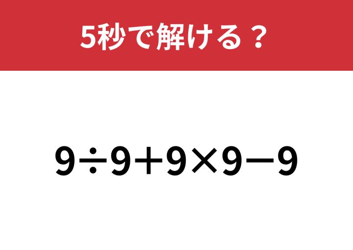 これが解ければ困ることなし!「9÷9+9×9−9」5秒で解ける?