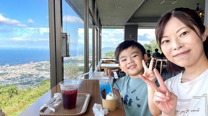 私は息子とふたりで、麓からロープウエイに乗って山頂に向かいました。