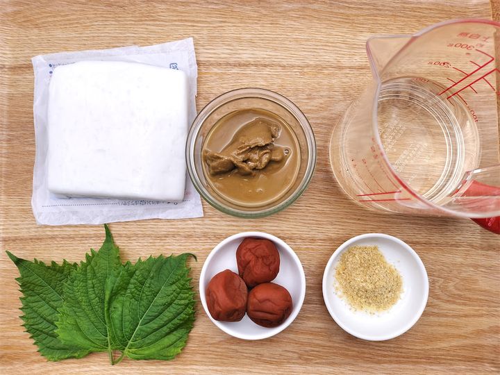 梅干しは種を取り除き、1個分は細かく叩いておきます。