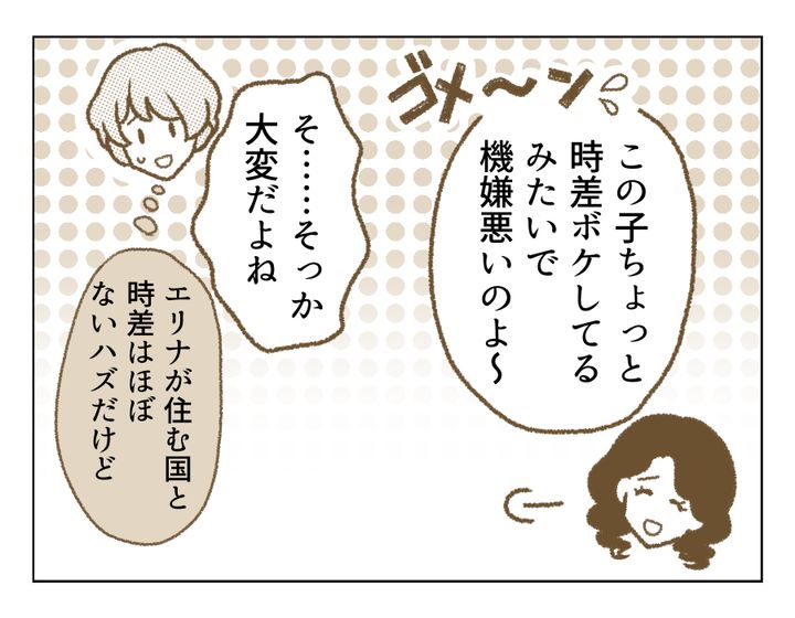 3. 【放置!?子守り押し付け友】挨拶しないのは時差ボケだから?飲み会スタート#4コマ母道場