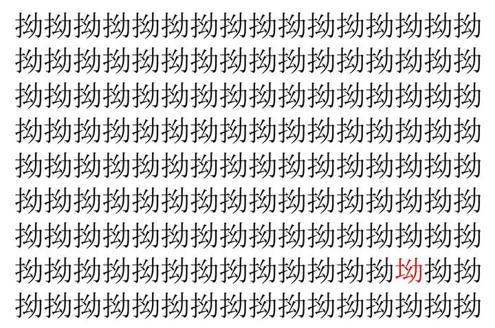 2. 【脳トレ】「拗」の中に紛れて1つ違う文字がある!?あなたは何秒で探し出せるかな??【違う文字を探せ!】