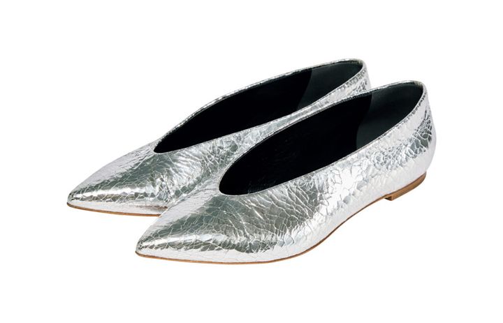 良質な素材を追求する〈エイトン〉が、レザーグッズのコレクションをスタート。シャープなつま先が凛々しい靴は、木型から仕上げまで、イタリア・ベネチアの工房で作られている。柔らかなイタリアンレザーやクッション性のあるインソールが、快適な履き心地を叶えてくれる。ひび割れ加工を施したシルバーは今季のカラー。定番として、ブラックも発売に。