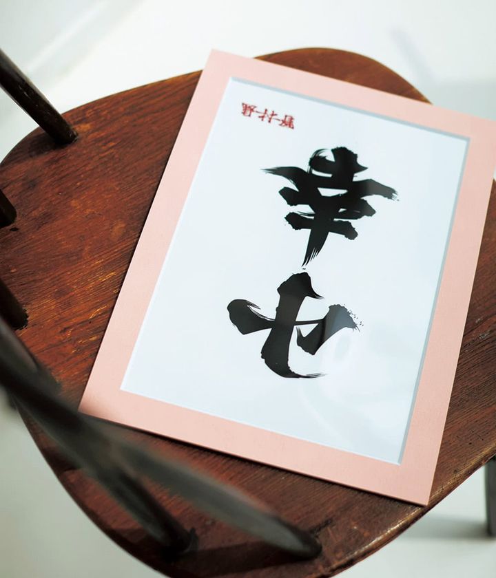 撮影の日に正章さんが持っていらした小春さんへのプレゼント。小春の文字をさかさまにすると幸せの文字が浮き出します。