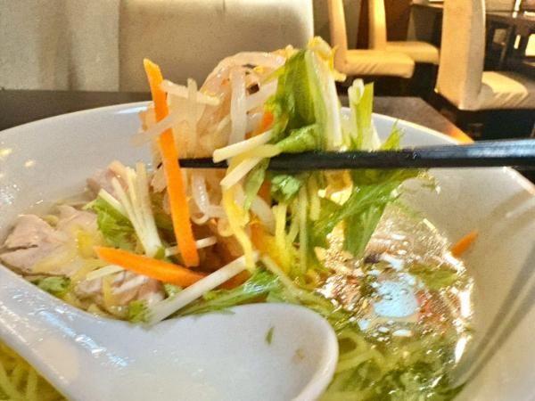 にんじんや水菜、もやし、葱など、野菜がたっぷりなのも嬉しいポイント♪ 特に葱にはしっかりめの味がついていて、最後の1欠片まで食べ逃したくないくらいのおいしさ♪