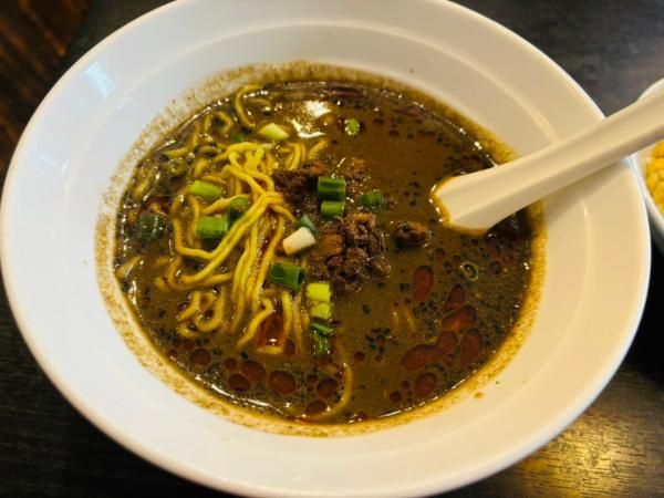 担々麺は大好きなものの、辛すぎるものにあまり強くない私は、少しドキドキしながらスープをひとくち。 すると…黒胡麻がたっぷりで、とっても濃厚な味わい!辛みよりも黒胡麻の旨味が強い印象です。