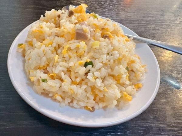まずは半炒飯が到着。焼き豚がゴロゴロと入っていて、やさしい味わい。パラッパラでとってもおいしい~♪