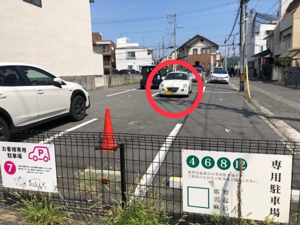 駐車場自体のスペースは広いですが、1台分(7番)以外はその他のお店の専用駐車場になっています。