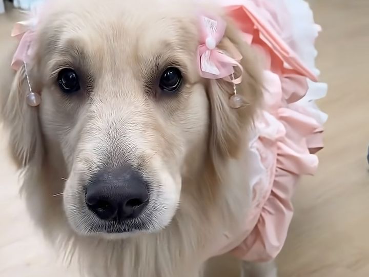 犬「あとはこのアクセサリーつけて!」鏡の前でポーズを決める姿がまるで本物のプリンセス♡