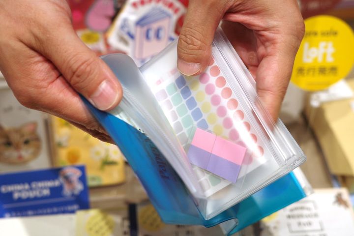スライドポーチと4つのポケットがついていて、シールやデコレーションアイテムはもちろん、薬や小銭、鍵などバッグの中で迷子になりやすい小物をスリムにまとめることができます。デザイン豊富で、ポップなカラーが多め。バッグの中で探しやすそうです。