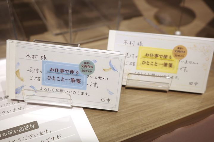 正直、どう書いていいかわかりません……という人の救世主となってくれそうなのが「お仕事でつかうひとこと一筆箋(506円)」。補助線のおかげでバランス良く書くことができ、文章量に困らないサイズ感がちょうどいい! 裏面には文例までついていて、初心者さんは助かること間違いなしです。