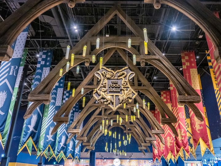 スタジオツアー東京到着後はホグワーツの生徒たちが食事するシーンで何度も登場する大広間をイメージした内装のレストラン、フードホールが一部貸し切りとなって、特別な日をお祝いしました。