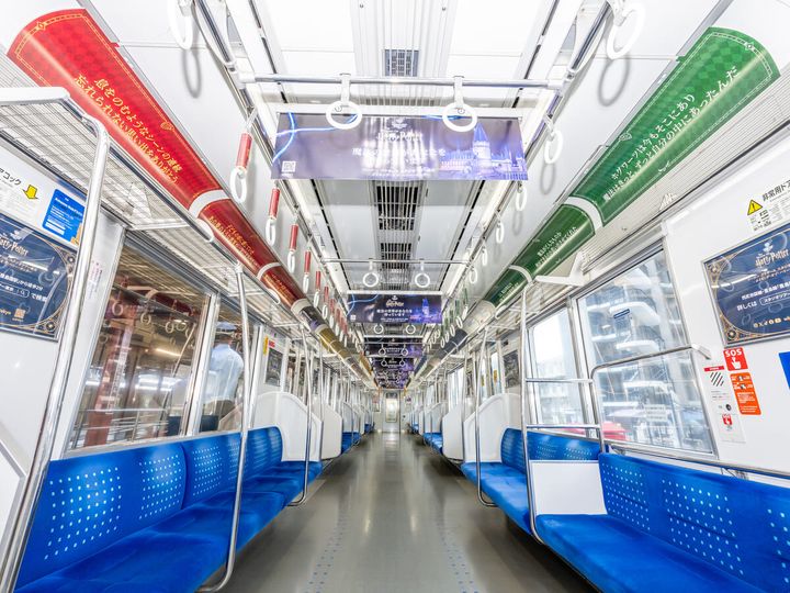 「ハリー・ポッター」たちが外装に全面ラッピングされた「スタジオツアー東京エクスプレス」の車両の一部が新学期にふさわしく「バック・トゥ・ホグワーツ」をイメージした内装にお色直しされ、この日のイベント参加者がその最初の乗客に☆