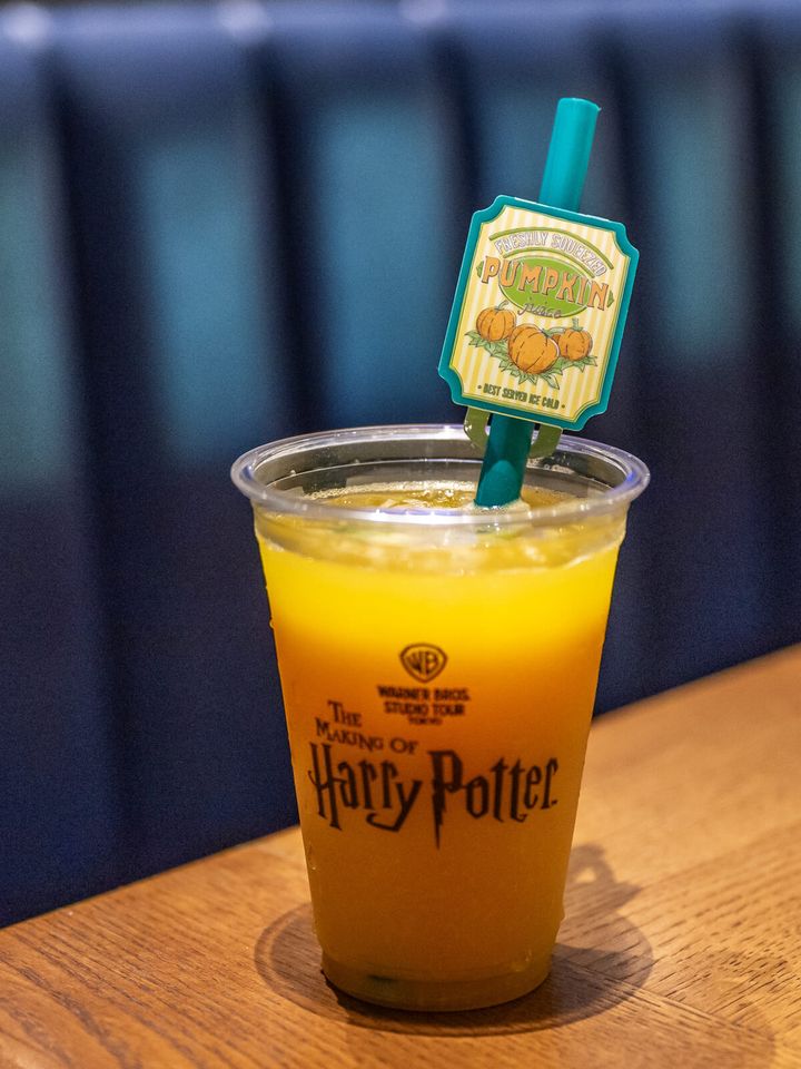 ファンにとってはおなじみ、作中にも登場するドリンク・パンプキンジュースで乾杯!