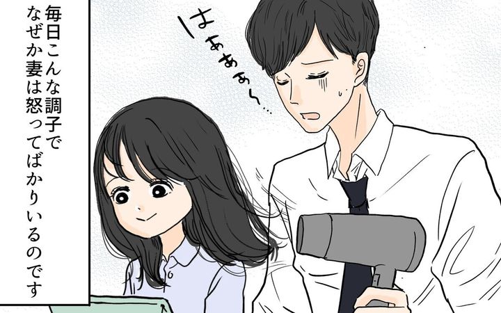 しぶしぶ妻がお風呂に入れ、あがった娘の世話をしても、出来ていない事を怒られます。