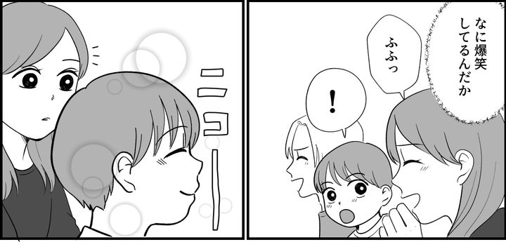 アニメがはじまると、意外にも夫は食いついて見入っていました。私はそもそもアニメに興味がないので「つまらないな」そう思っていると、心配そうに私の顔を見るリク。私の顔を見てはまたテレビに戻るリク。そうして再び盛り上がりそうなシーンになると、またチラッと。逐一私の表情を確認するのです。夫が爆笑したので、その笑い声がおかしくて私がクスッと笑うとリクも嬉しそうに笑顔になるのでした。