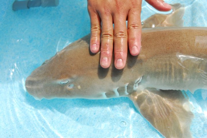 「タッチングプール」は水中で暮らす生き物に直接触れることができるスポットです。「すさみ町立エビとカニの水族館」には「タッチングプール」が複数設置されており、ウニ・ヒトデ・ナマコのほか、絶滅危惧種の生きたカブトガニ、世界最大のカニであるタカアシガニ、世界最大のダンゴムシの仲間であるオオグソクムシ、人に対して安全な小型種のサメなどを触ることができます。