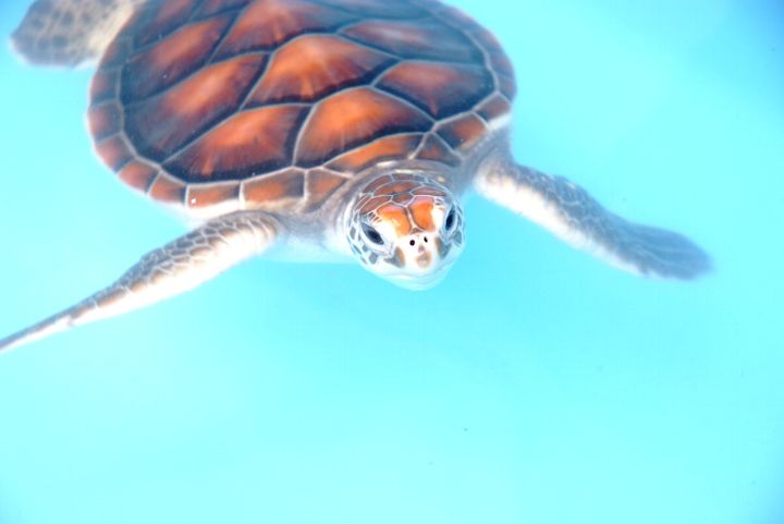 施設内にはウミガメやペンギンも暮らしています。ウミガメのエサやりも人気です。(施設担当者)