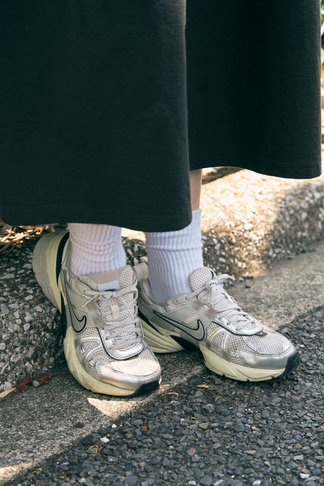 UNIQLOのワンピースは、体のラインを拾わないゆったりとしたシルエットで、さらりと快適に着こなせます。重たく見えないように、白ソックスと存在感のあるスニーカーを合わせてバランスを調整。靴とマルジェラのバッグは同系色で統一し、赤いキャップを差し色に加えることで、全体にメリハリのあるスタイリングに仕上げました。