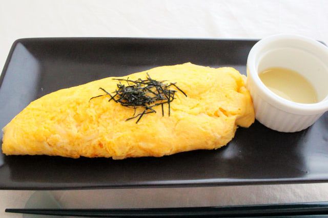 刻みのりを乗せ、そうめんつゆを添えたので和風オムレツというのが伝わります。