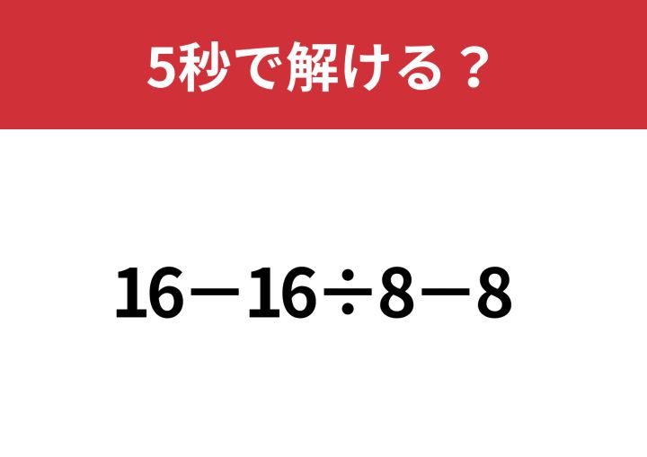 どこから解けばいいか迷うかも?「16−16÷8−8」5秒で解ける?