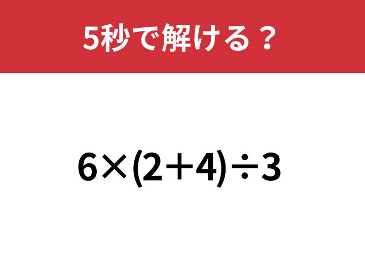 計算の基本がわかっていれば正解できる!「6×(2+4)÷3」5秒で解ける?