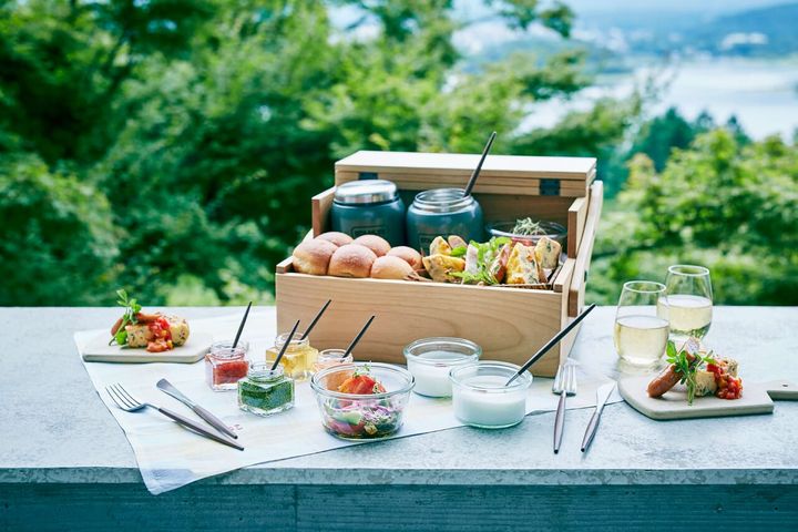 次の日の朝は、キャビンのテラスリビングでいただく特製モーニングBOXからスタート! 全キャビンに設けられた開放的なテラススペースでは、室内にいながらも外の空気や風を感じられて、まるで自然の中にいるような心地よさです。