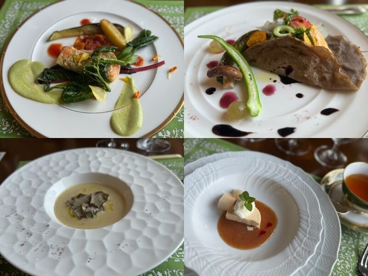 お料理は、プログラム限定のコースで、甲州ワインとのマリアージュを楽しめる贅沢な内容。女性にちょうどいいボリューム感で、山梨の旬を詰め込んだ地元食材が並びます。
