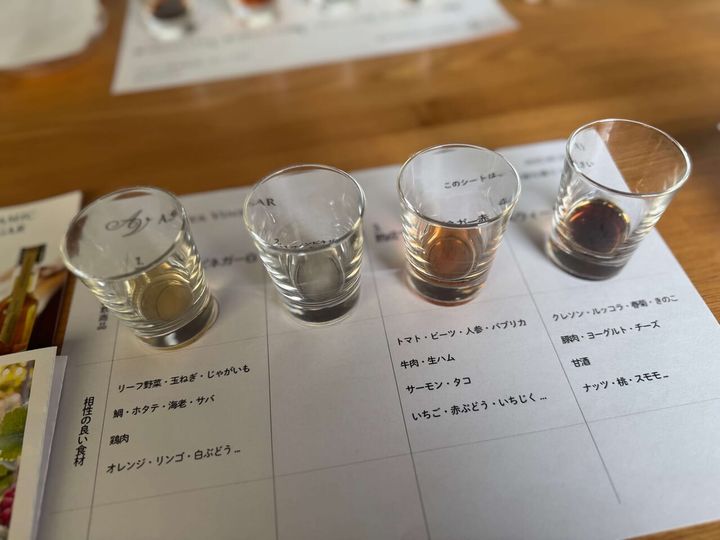 最後には、ワインビネガーの飲み比べ体験も! 風味や酸味の違いをじっくりと味わいながら、ワインビネガーの奥深さに触れました。
