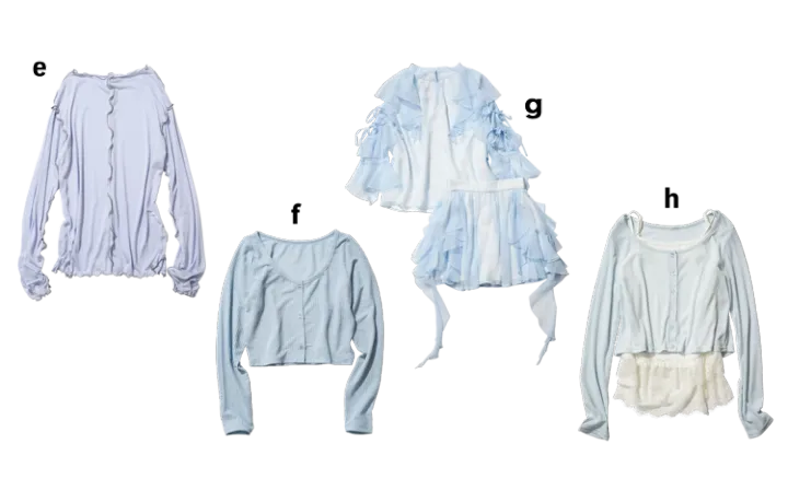 ▶︎マニッシュな印象のブルーシャツ。ぷりかわガールはリボンやフリル使いのデザインがお似あい♡