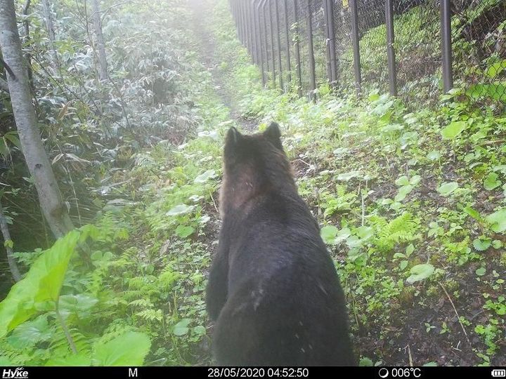 2020年に滝野公園内に設置した自動カメラで撮影されたヒグマ。対策を強化し、2021年以降、侵入はありません