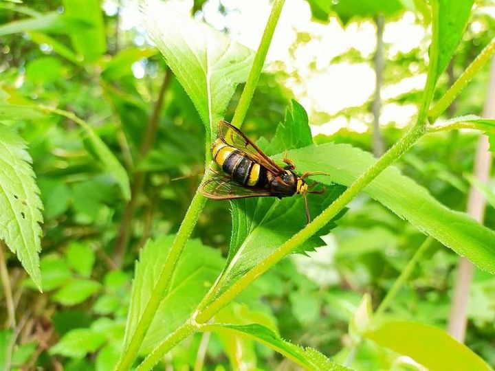 初めてみた時は絶対スズメバチだと思い、すっかり騙されました。