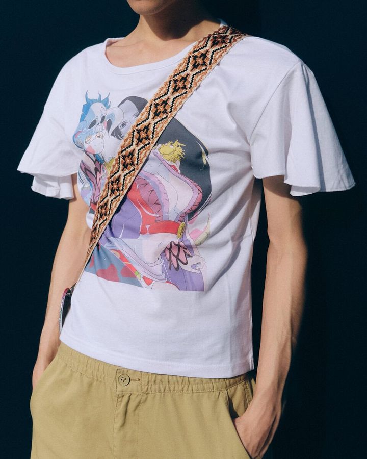 3. 【スナップ】個性の強いアニメTシャツのインパクトを“Aラインシルエット”が中和