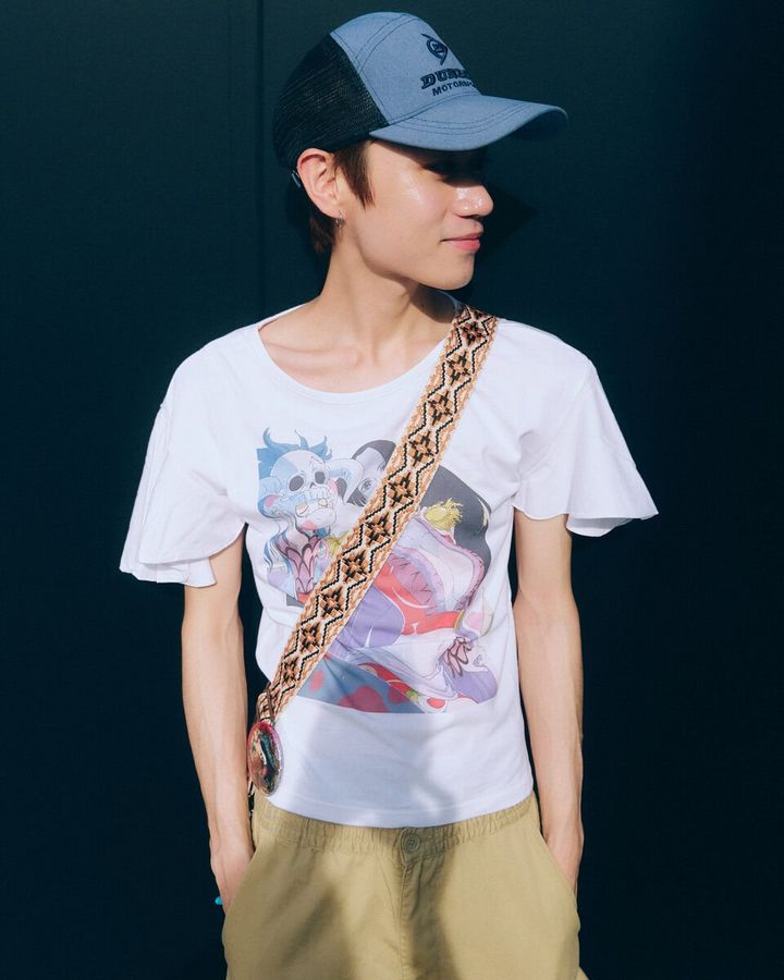 【スナップ】個性の強いアニメTシャツのインパクトを“Aラインシルエット”が中和