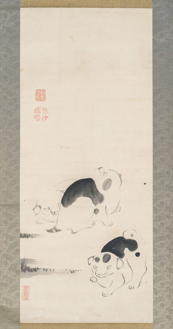 近年、注目を集める江戸絵画の中でもとりわけ人気の、伊藤若冲、円山応挙、長沢芦雪。この3人の巨匠が描いた子犬たち。
