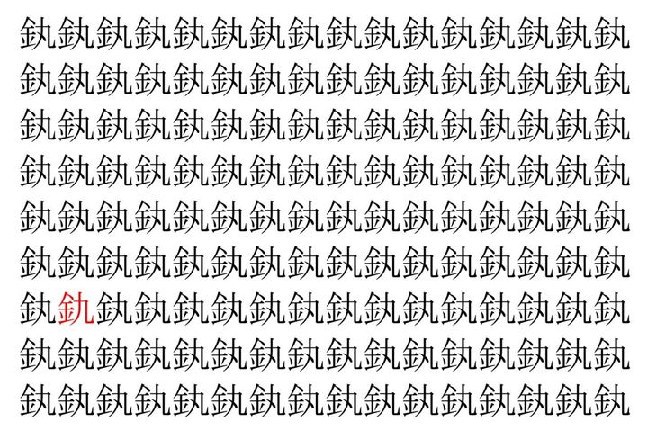 2. 【脳トレ】「釻」の中に紛れて1つ違う文字がある!?あなたは何秒で探し出せるかな??【違う文字を探せ!】