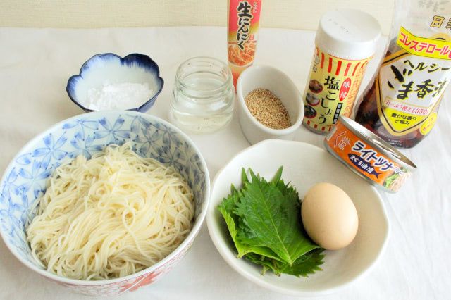 今回作る「カリカリ大葉そうめんチヂミ」は、茹でたそうめんをおかずにできるレシピでした。多めに茹でて残ってしまったそうめんがあるので、作ってみます。