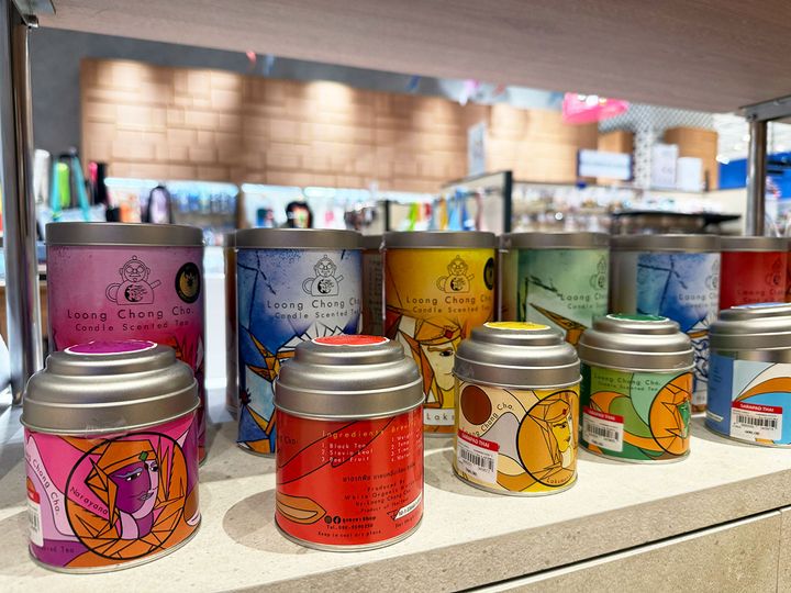 とにかく大胆な色使いやモダンなタイ文字を配したデザインが目を引きます。紅茶やスナックも、まるでギャラリーで見つけるポスターのようにスタイリッシュ。観光客だけでなく地元の若者たちも、日常的に「見た目が良いから買う」という選択を楽しんでいるよう。
