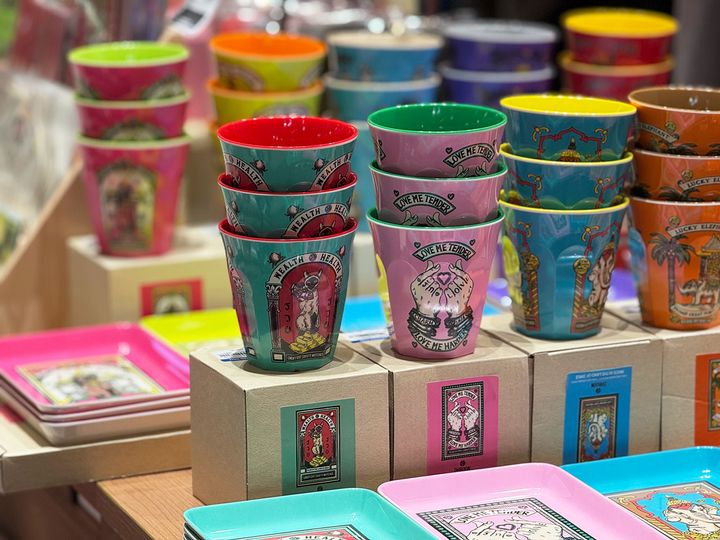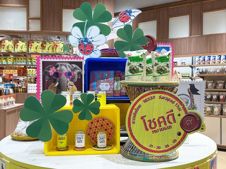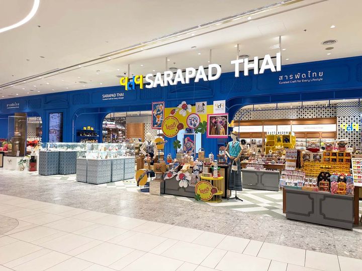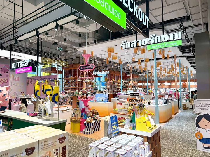 で、仕事の空き時間に、ふらっと寄ってみたのが、エリア内の商業施設に構える「SARAPAD THAI」。ここ、びっくりしました、ほんとに。いわゆるギフトショップなんですが、タイのクリエイティブ産業の現在地を体現するショーケースのようなプレゼンス。店内に一歩足を踏み入れると、壁一面にカラフルで洗練されたパッケージが並び、自分の中の「タイらしさ」が鮮やかに更新されてしまいます。民族調の柄や仏教美術といった従来の要素を活かしながら、シンプルでモダン、時にユーモラスなデザインが満載で、そうとうアガります。