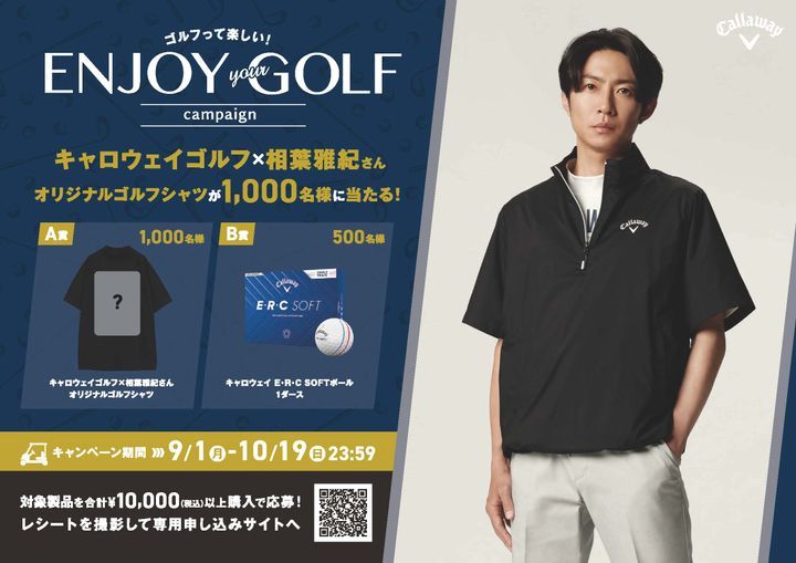 その名も「ゴルフって楽しい!ENJOY YOUR GOLF Campaign」。期間中に対象商品を税込10,000円以上買い物をした人の中から抽選で、ブランドのアンバサダーを務める相葉雅紀さん×キャロウェイゴルフのオリジナルゴルフシャツが1,000人に当たります。