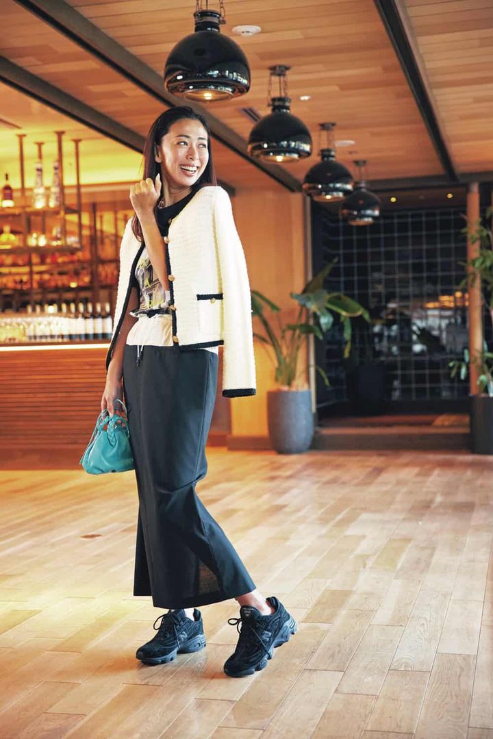 「タイトスカート×厚底スニーカー」でランチ会も垢抜ける!【ニューバランス】