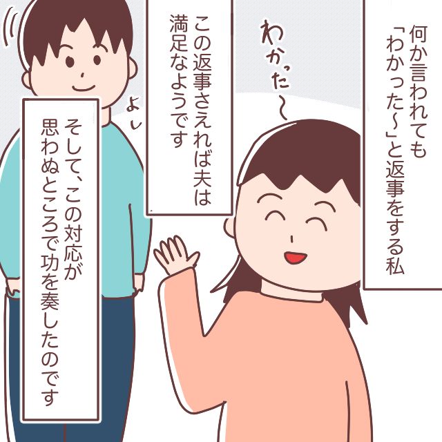 何か言われても「わかった~」と返事をする私。この返事されしていれば夫は満足なようでした。