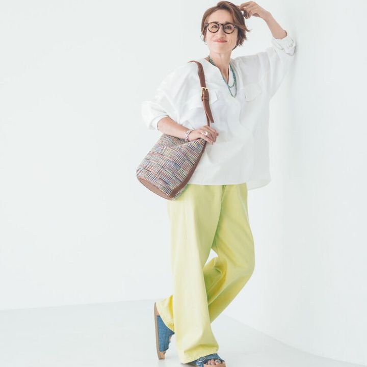 イエローデニムで作る、明るく華やかな大人カジュアル