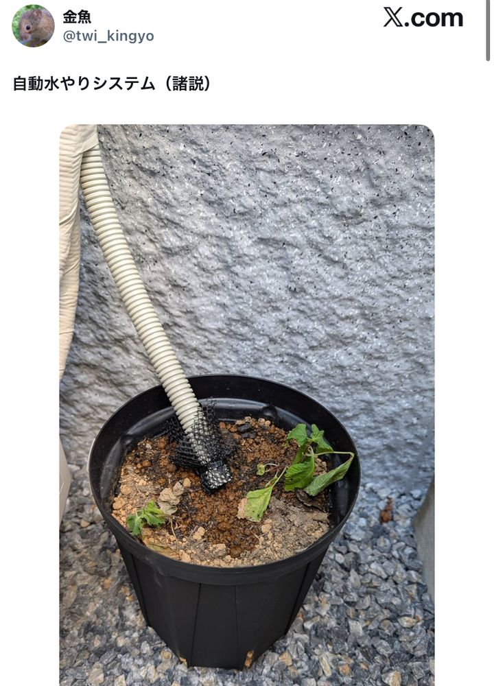 3. エアコンの排水ホースが植木鉢に直行!?自動水やりシステム投稿に「すごい!発想の転換ですね!」と称賛の声も