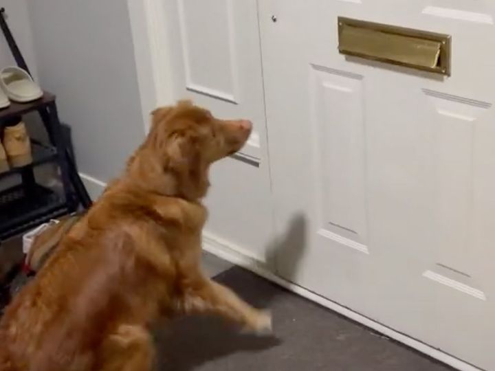 郵便配達は遊びの合図?ポストに飛びつき郵便物を持ち去ろうとする犬さん