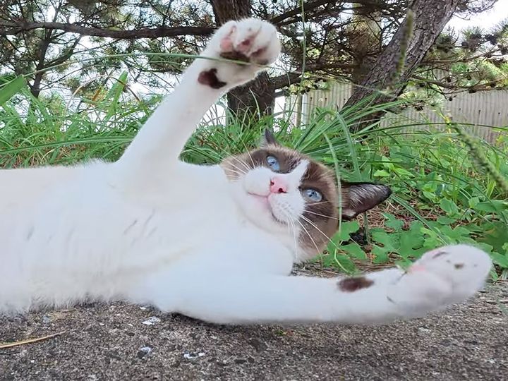 3. 猫さんたちが天然の猫じゃらしに夢中! 飛び跳ねて遊ぶ姿が元気で可愛い